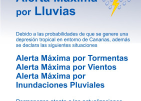 El Gobierno de Canarias, ante las probabilidades de que se genere una depresión tropical en el entorno de Canarias, ha declarado la situación de Alerta Máxima por LLUVIAS a partir de este sábado, situación que se...