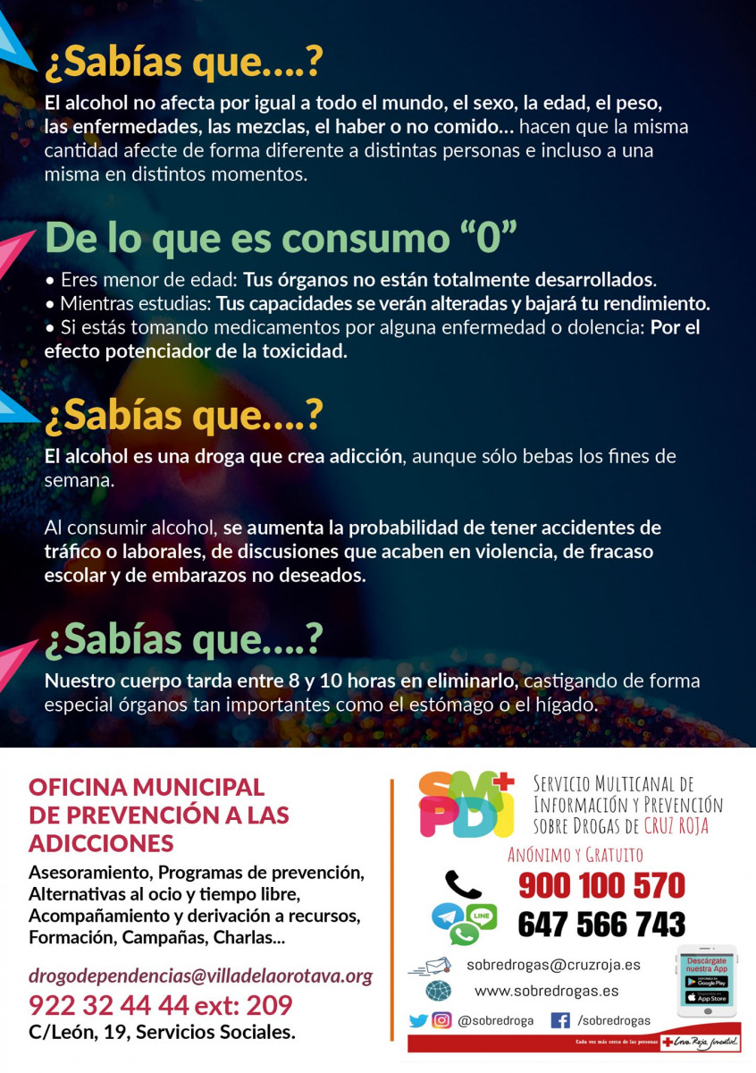 Desde la Concejalía de Sanidad y Drogodependencias del Ayuntamiento de la Orotava junto con Juventud Cruz Roja, se realizó una campaña de sensibilización y prevención del consumo de drogas y alcohol durante el Carnaval, especialmente dirigida a jóvenes. Tuvo presencia en varios espacios, como en los centros educativos, los centros de salud y en la calle. El objetivo es demostrar a la gente que es posible disfrutar sin consumir sustancias que puedan perjudicar a la salud.